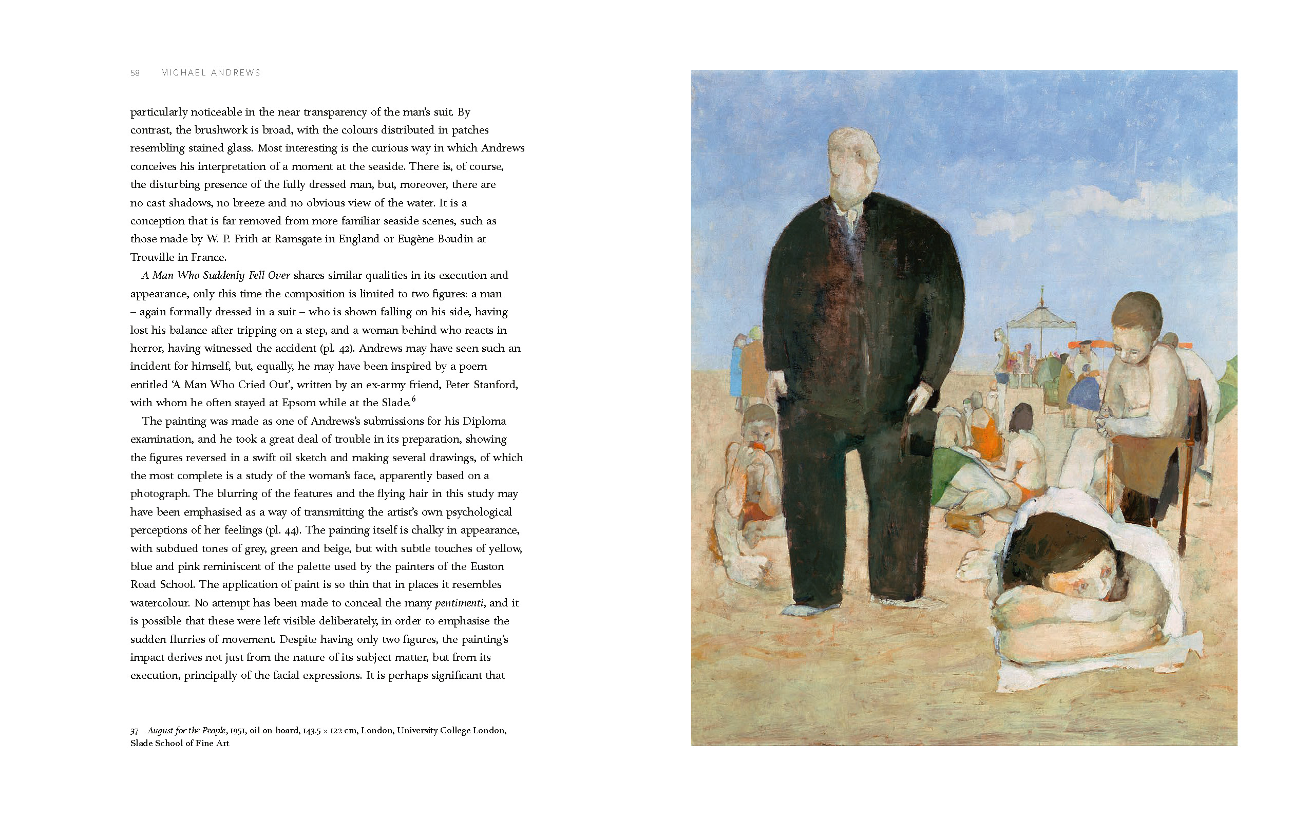 Michael Andrews (1928–1995) is probably one of the least known but certainly one of the most important British artists of the twentieth century. The range and quality of his work has never been in doubt since his days at the Slade School of Art in 1949–53, and his aptitude for painting only masterpieces has been noted on more than one occasion.